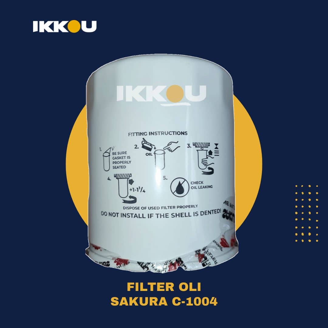 Filter oli Sakura C-1004 digunakan untuk menyaring kotoran yang terdapat pada oli mesin. Oli mesin digunakan secara berulang sehingga memungkinkan kotoran untuk masuk dan mengkontaminasi oli. Kotoran yang terdapat di dalam oli mesin dapat menurunkan kualitas oli mesin itu sendiri.