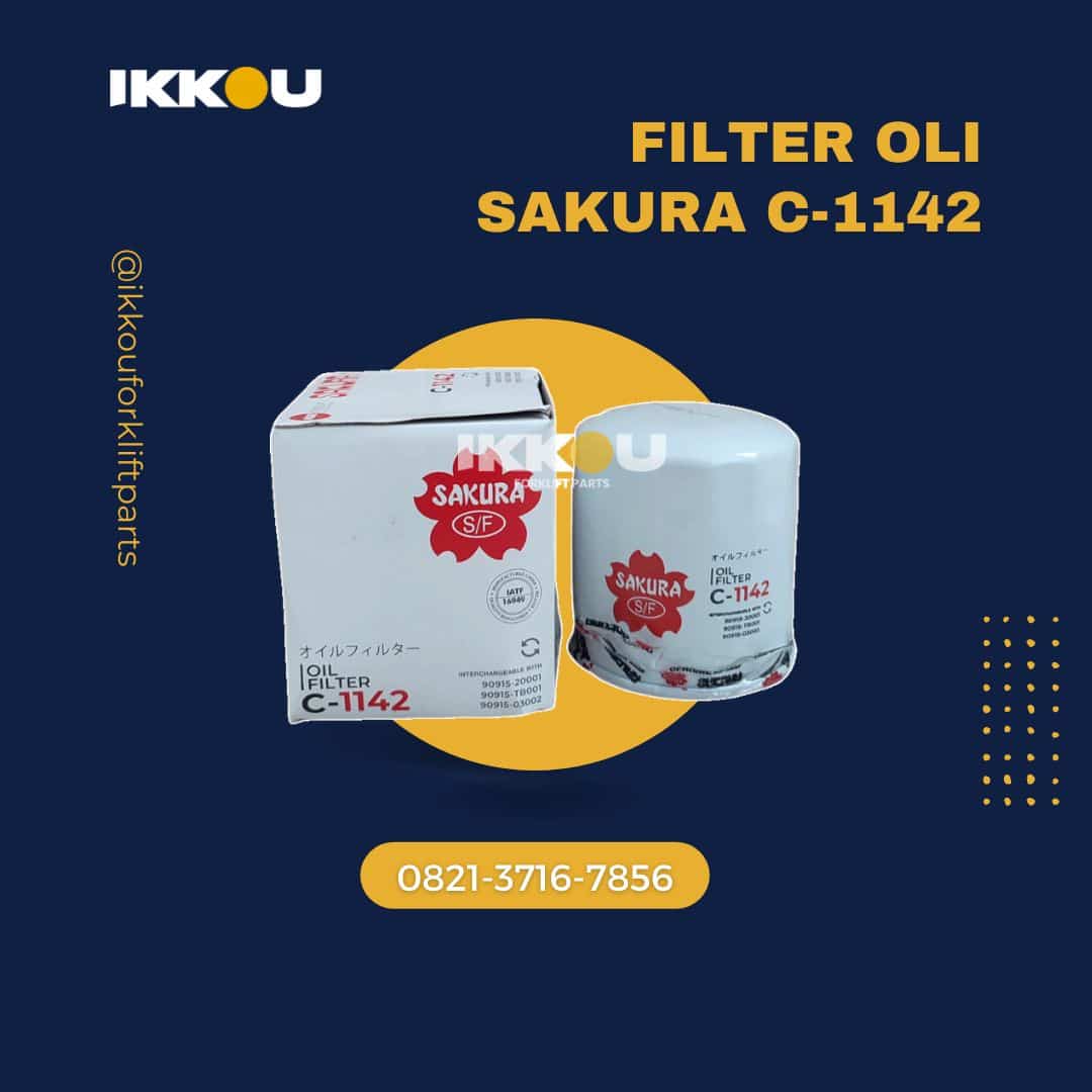 Filter oli Sakura C-1142 digunakan untuk menyaring kotoran yang terdapat pada oli mesin. Oli mesin digunakan secara berulang sehingga memungkinkan kotoran untuk masuk dan mengkontaminasi oli. Kotoran yang terdapat di dalam oli mesin dapat menurunkan kualitas oli mesin itu sendiri.